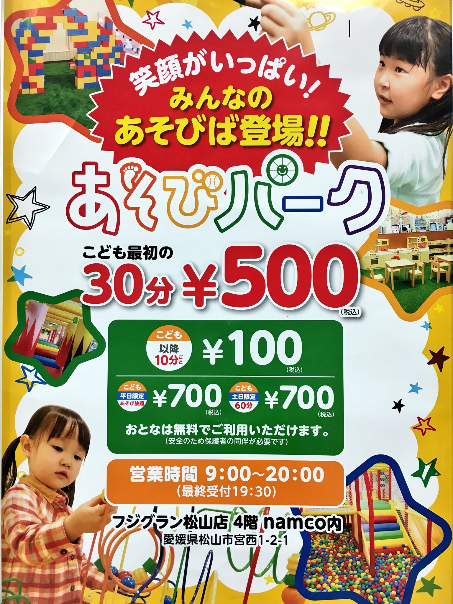 Namcoフジグラン松山店 On Twitter 松山店のあそびパークではお得なキャンペーンを実施中です ママ友2名とお子様2名以上で ご利用料金が 全 員 半 額 平日は遊び放題が半額の350円 30分も250円
