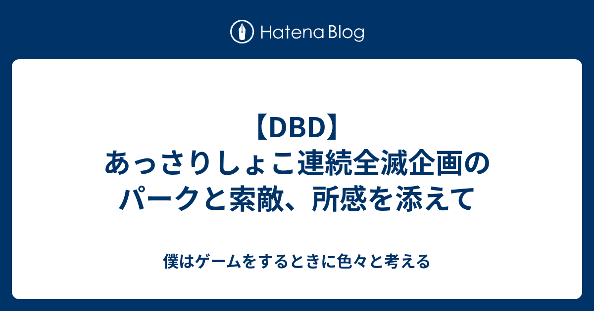 Dbd あっさりしょこ連続全滅企画のパークと索敵 所感を添えて 僕はゲームをするときに色々と考える