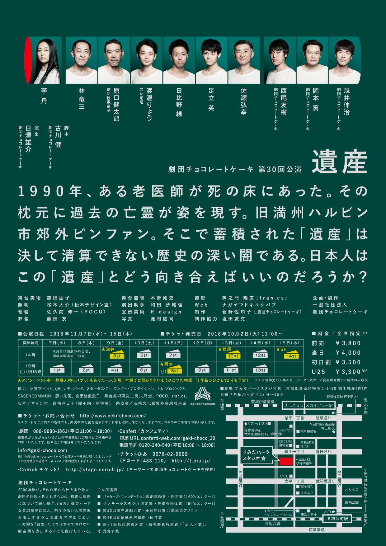 劇団チョコレートケーキ On Twitter 第30回公演 遺産 11月7日 水 15日 木 すみだパークスタジオ 倉 ある老医師が死の床にあった その枕元に過去の亡霊が姿を現す 旧満州ハルビン市郊外ピンファン そこで蓄積された 遺産 は決して清算できない歴史の深い闇