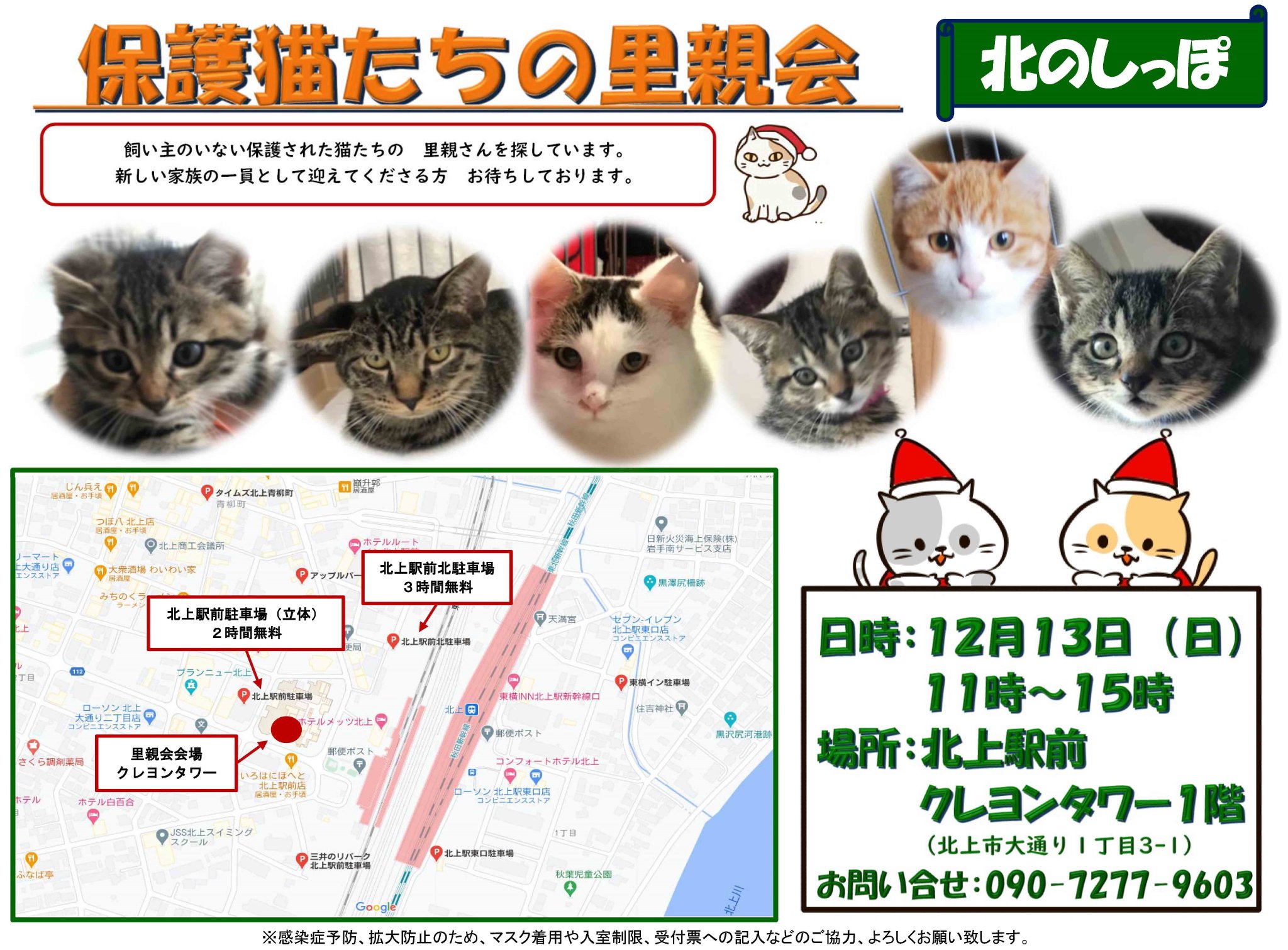 北のしっぽ On Twitter 里夜会のお知らせ 今年最後の里親会です 12 13 日 11時 15時 北上駅前クレヨンタワー1階で行います 猫たちにステキなクリスマスプレゼントを届けたい ぜひとも 会いに来てくださいね よろしくお願いします 北のしっぽ 保護猫