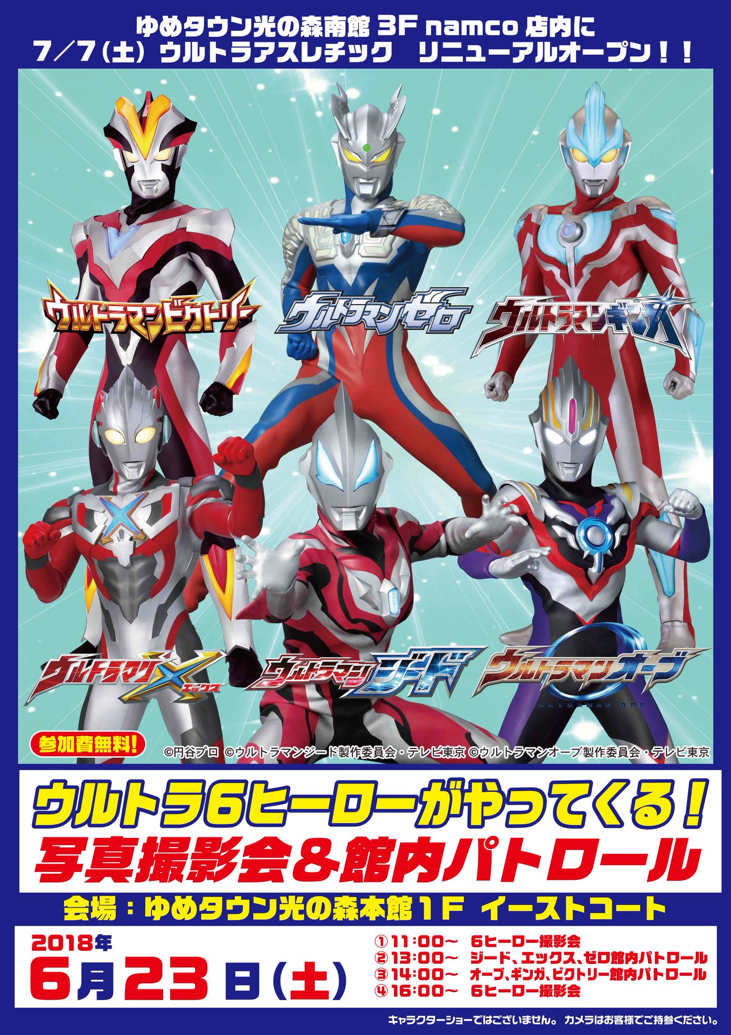 Namcoゆめタウン光の森店 A Twitter 光の国から光の森へ ウルトラヒーローが6月もやってきます 6 23 土 写真撮影 館内パトロールです ウルトラアスレとあそびパークは改装中の予定ですが ウルトラヒーローも新しくなるウルトラアスレが気になる