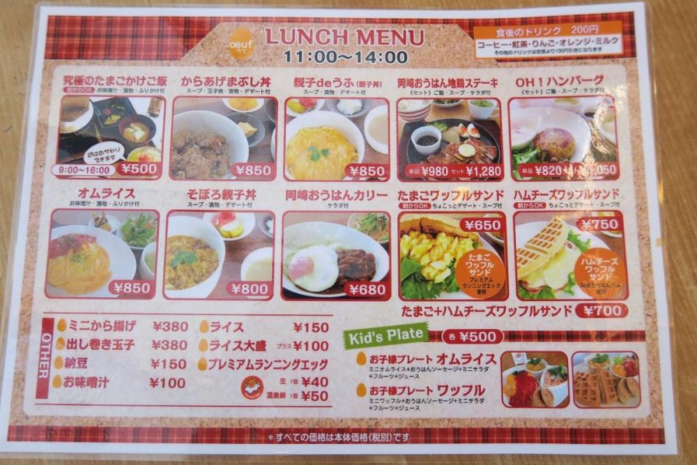 メニュー一覧 岡崎市 ランパーク内 たまごdeごはん Oeuf たまごでごはん ウフ